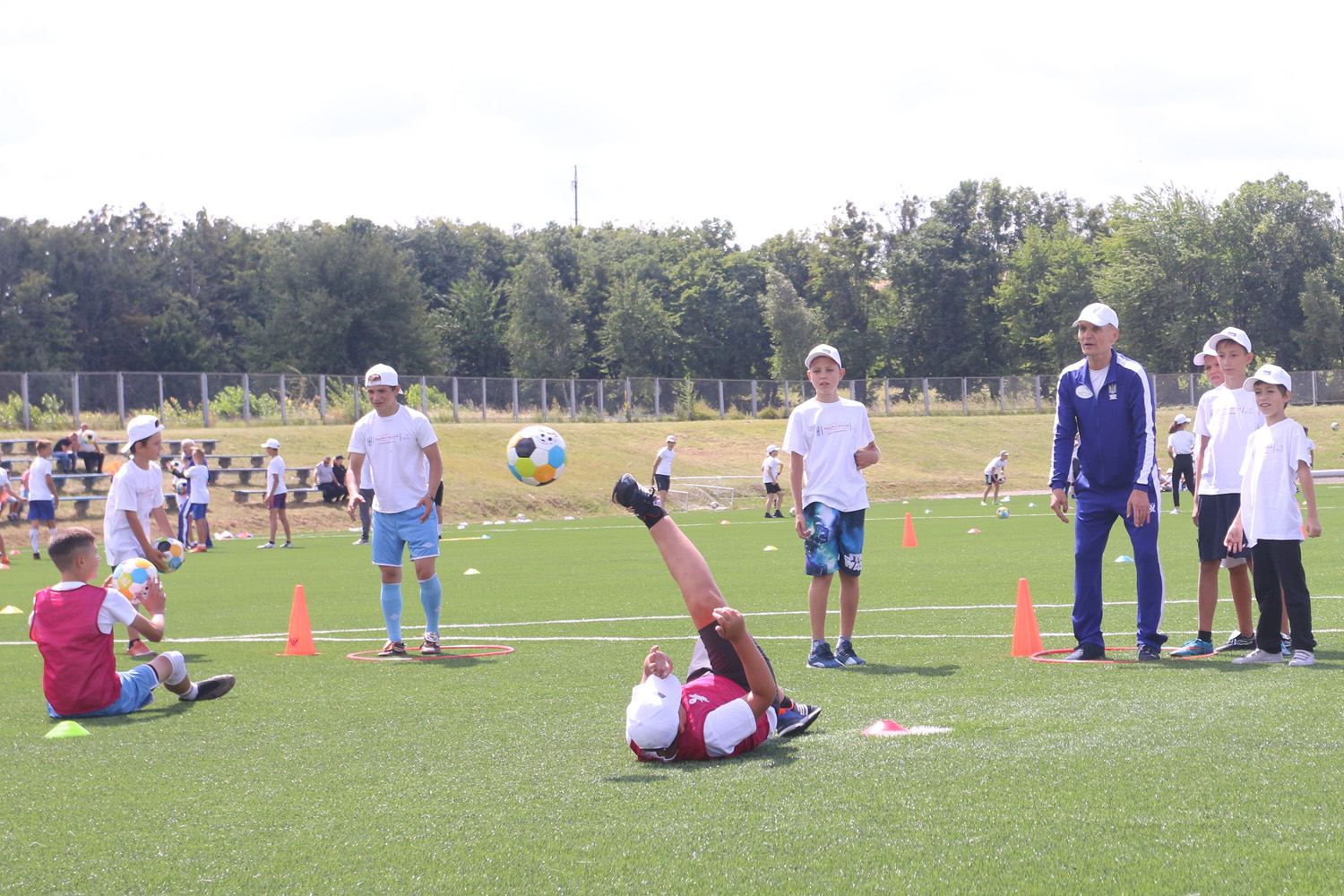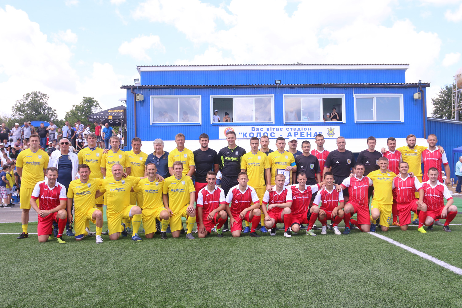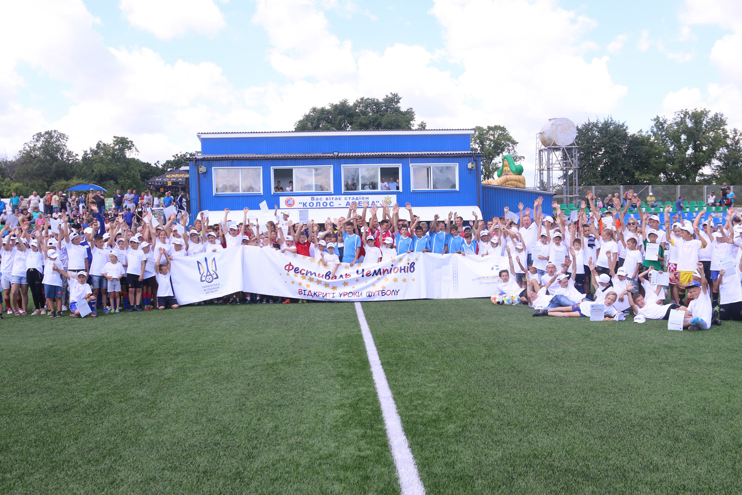 Затишний стадіон «Колос» є однією з візитівок міста, його було відремонтовано три роки тому, покладено новий штучний газон. Відтепер це центр спортивного життя цілого регіону, тут завжди багатолюдно, щоденно проводяться тренування та матчі. Перед грою збірної ветеранів на «Колосі» відбувся соціальний проект «Відкриті уроки футболу» за участі близько 200 юних футболістів. Кожному із них перший віце-президент УАФ Олег Протасов вручив м’ячі та пам’ятні дипломи. «Приємно дивитися в обличчя дітей, бачити, з якою пристрастю вони займаються футболом, опановують технічні прийоми, виконують всі настанови тренерів, – відзначив Олег Валерійович. – Вдвічі приємніше, що серед футболістів багато дівчат, це також один із пріоритетних напрямків діяльності УАФ. У Корсуні чудова інфраструктура, на трибунах багато глядачів. Опісля проведення майстер-класу є можливість на власні очі побачити в грі справжніх майстрів футболу, а потім поспілкуватися чи зробити з ними фото. Такі заходи є дуже важливими з точки зору популяризації футболу, вони мають чим частіше проводитись в усіх куточках України».