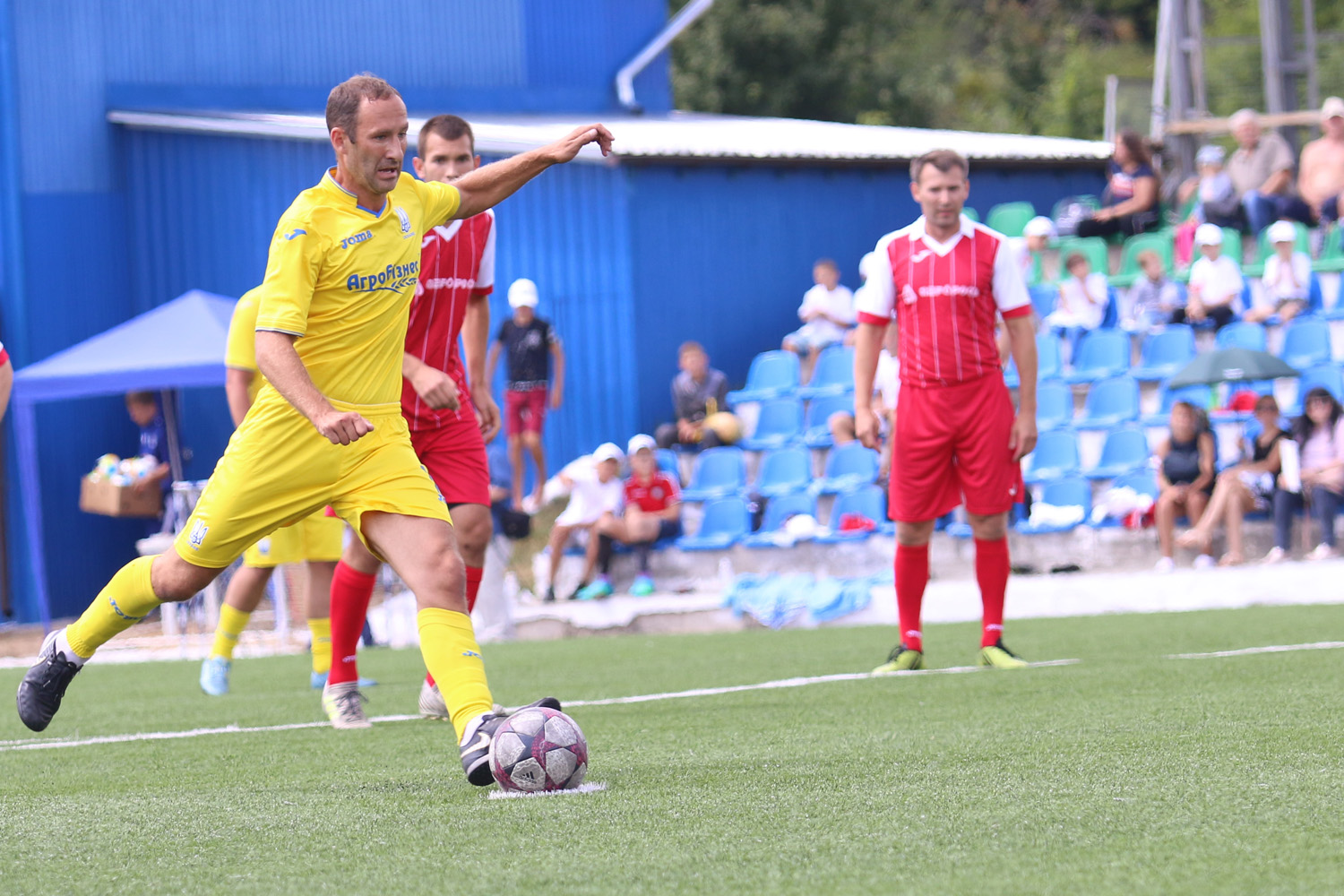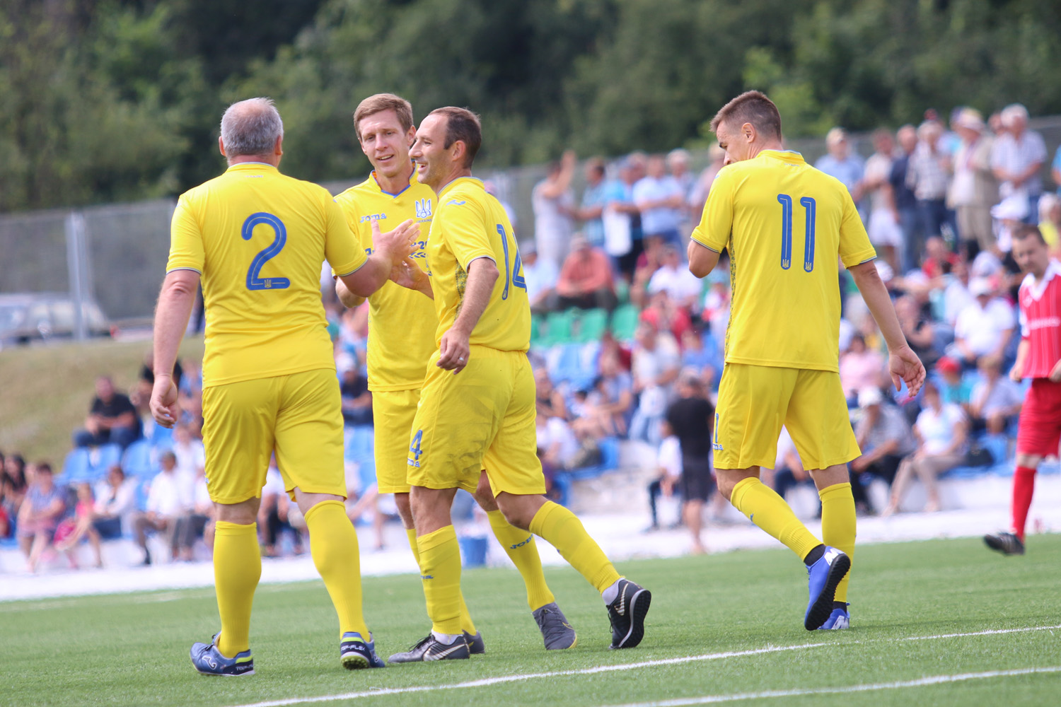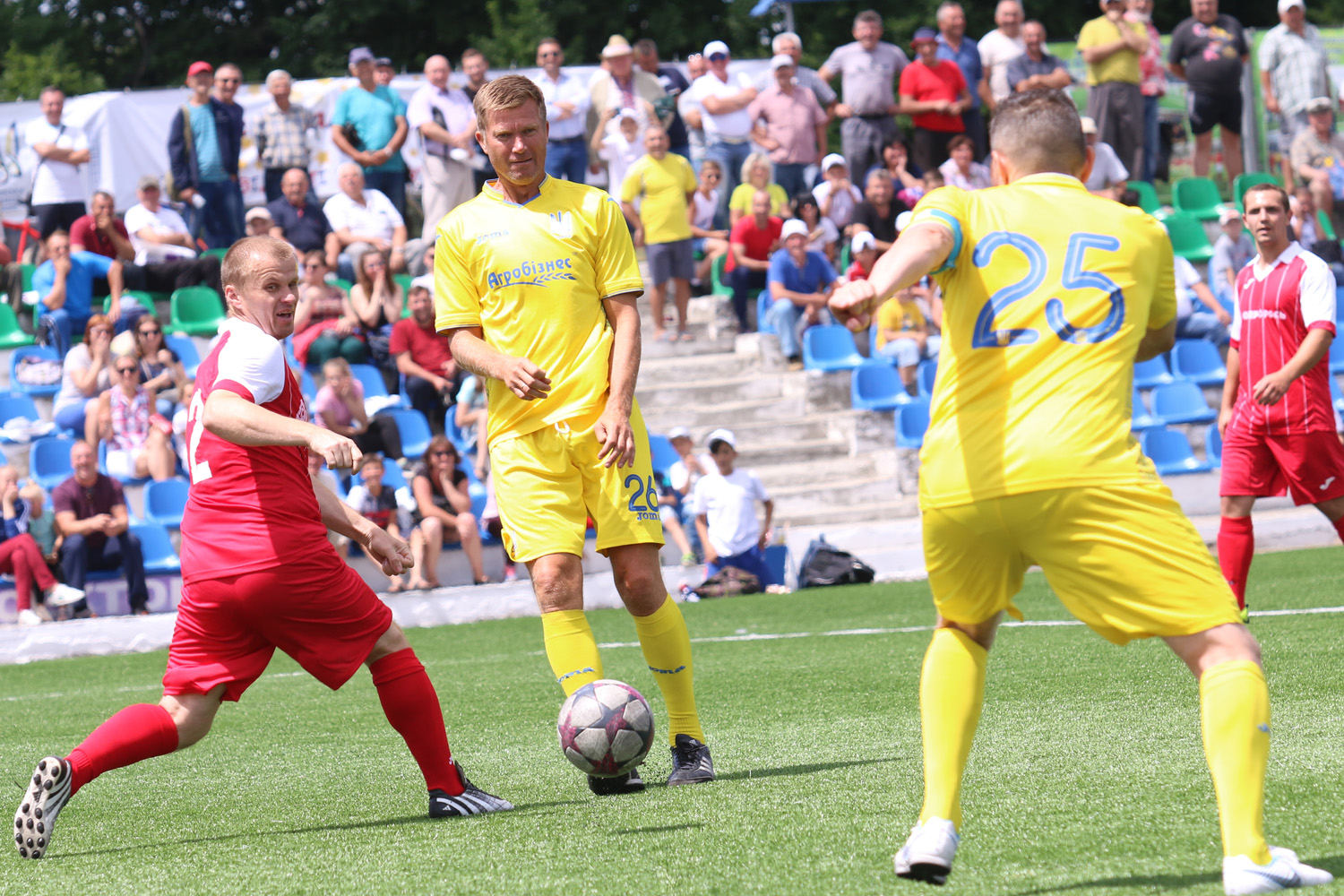 Щотижня Національна збірна серед ветеранів вирушає до нових регіонів України, проводячи матчі з місцевими колективами присвячені підтримці військових на сході країни. 6-го червня легенд вітчизняного футболу приймали у Корсунь-Шевченківському, що на Черкащині. Команда «Урожай» виявилася гідним супротивником, але збірна  врешті перемогла 3:1!