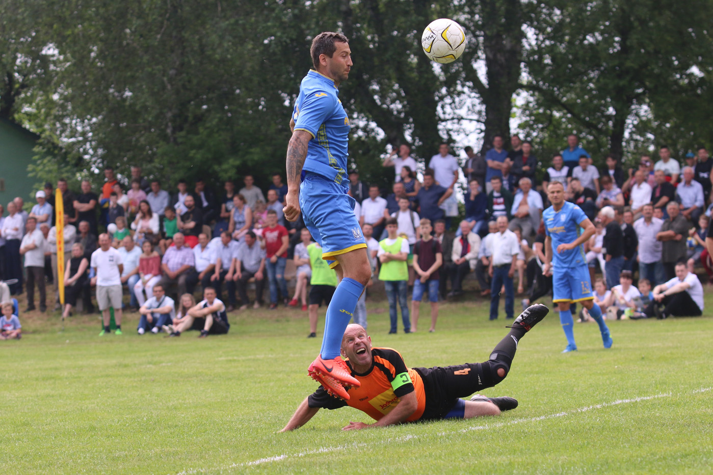 Зазвичай виставкові ігри завершуються внічию, з великим рахунком. У збірної ветеранів є своя позиція, від якої не відступає з моменту засування – на полі має бути боротьба та інтрига, глядачі мають побачити справжній футбол та отримати від нього насолоду. Господарі дуже обережно розпочали гру,тримаючи насичену оборону. Та рівень «зірок» дався в знаки і в середині першого тайму після стрімкого проходу та націленої передачі від В’ячеслава Шевчука (до речі, серед глядачів на трибунах був присутній батько В’ячеслава, Анатолій) м’яч було доставлено в центр штрафної, звідки капітан Владислав Ващук майстерно пробив повз голкіпера! Моментів після цього було створено безліч, лише Сергій Нагорняк та Олег Собуцький по кілька разів могли засмутити воротаря господарів. Але удачу «Ураган» заслужив своїм старанням, в підсумку на табло мінімальні 1:0. «Гарно підготовлена команда, люди люблять футбол, грають у нього в вільний час, – поділився враженнями після гри Владислав Ващук. – Мені дуже сподобалась атмосфера на стадіоні, невеличкі трибуни не вмістили всіх бажаючих і люди просто стояли навколо поля. Приємно грати за такої підтримки – ти і роки менше відчуваєш, і нові сили з натхненням приходять».