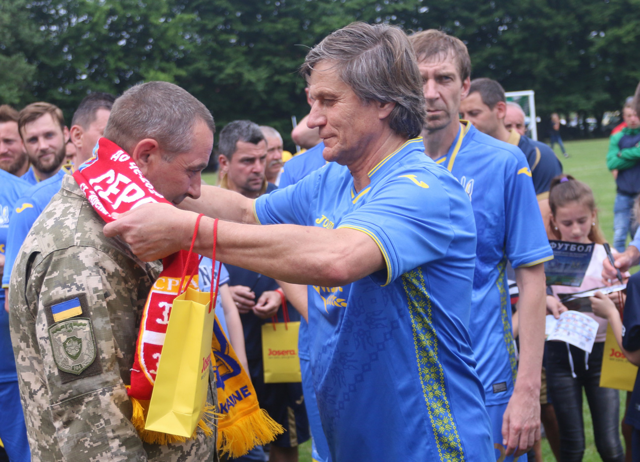 Після фінального свистка настав час збирачів селфі та автографів. Приділивши час уболівальникам, гравці зірної покликали до себе учасників АТО Самбірського району, подякувавши кожному особисто та вручивши сувеніри. Така увага з боку легенд футболу до наших захисників вже стала доброю традицією, і надалі вона залишатиметься незмінною, як і мета самого турне містами України – підтримка військових на сході. До речі, одному із них, Андрію Стандіо, учаснику АТО 2014-2015 років у складі батальйону «Айдар», тренери збірної Анатолій Дем’яненко та Володимир Лозинський довірили вийти на поле наприкінці гри, чим викликали щирі оплески глядачів.
