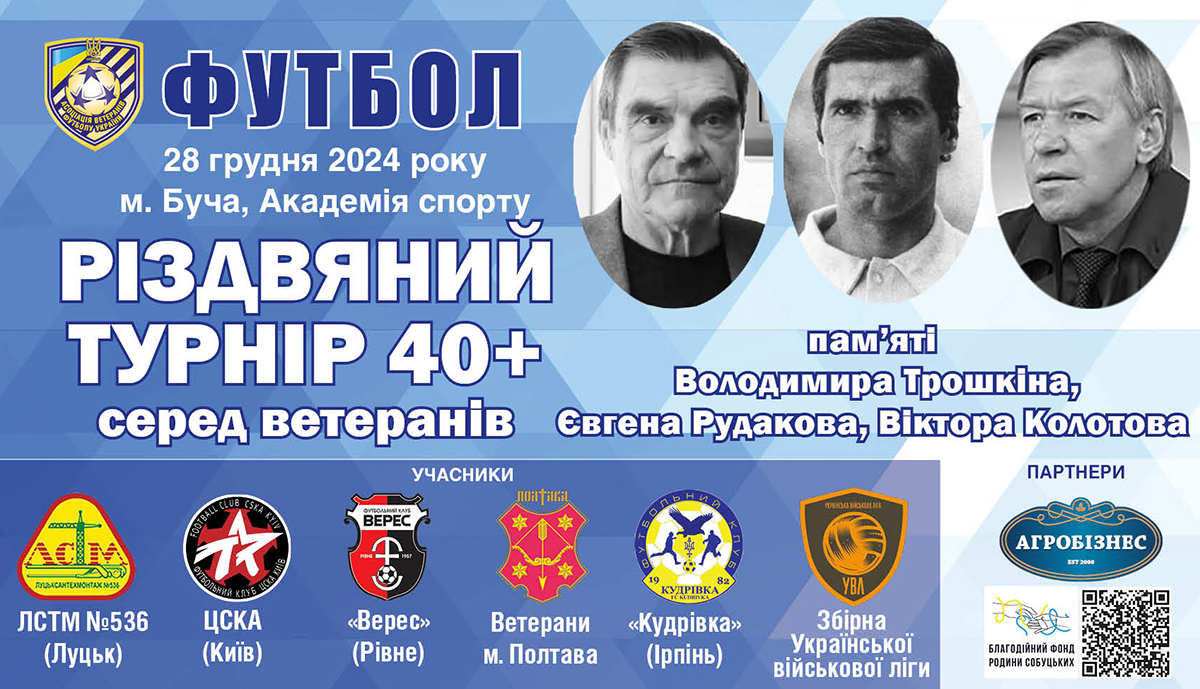 Завдяки плідній співпраці організаторів змагання – Асоціації ветеранів футболу України, ТОВ «Агробізнес» та Благодійного фонду «Родини Собуцьких» – цього року вже 25-й за ліком Різдвяний турнір збере шість команд з різних куточків України. Задля підтримки ветеранів футболу участь в турнірі є безкоштовною, всі витрати на проведення змагання беруть на себе організатори. Відзначимо, що цього року відбулись всі чотири запланованих планом-календарем АВФУ чемпіонати України серед ветеранів у вікових категоріях 35+, 45+, 55+ та 60+ років.