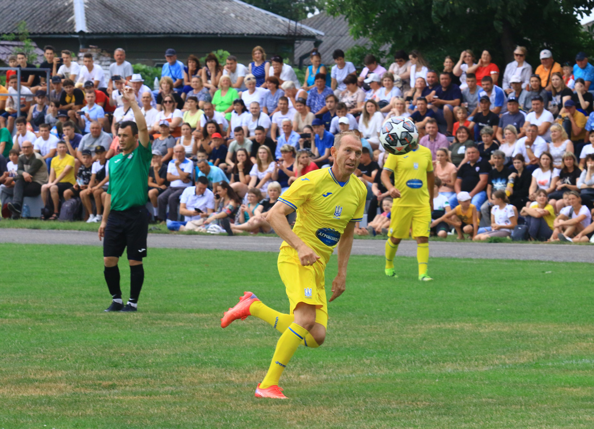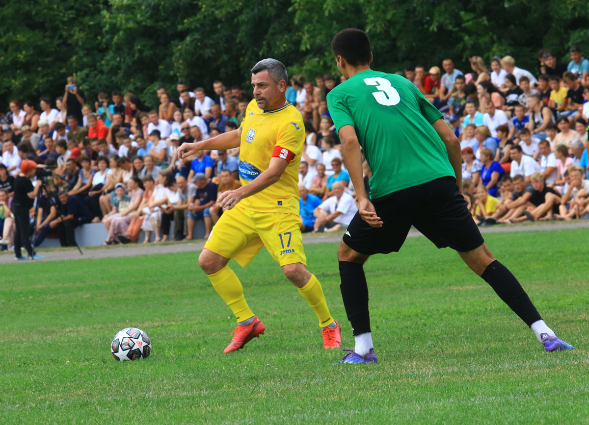А головним цього сонячного літнього дня в Балті був футбол! Особливе захоплення глядачів викликав склад збірної ветеранів. Це ціле сузір’я яскравих виконавців різних років: Едуард Цихмейструк, Сергій Погорілий, Андрій Полунін, Олександр Косирін, Валентин Полтавець, Іван Кривошеєнко, Руслан Костишин, Артем Старгородський, Олег Шелаєв, Віталій Самойлов, В’ячеслав Свідерський, Геннадій Медведєв та Олександр Венглинський. Разом з командою були віце-президенти Асоціації ветеранів футболу України, знані футбольні фахівці Андрій Біба та Петро Чілібі. Через службу в Збройних силах України та виконання в цей час бойових завдань на сході країни був відсутній засновник збірної ветеранів, майор ЗСУ Олег Собуцький. Від нього були передані теплі слова глядачам та учасникам матчу, побажання миру та якнайшвидшого завершення війни.