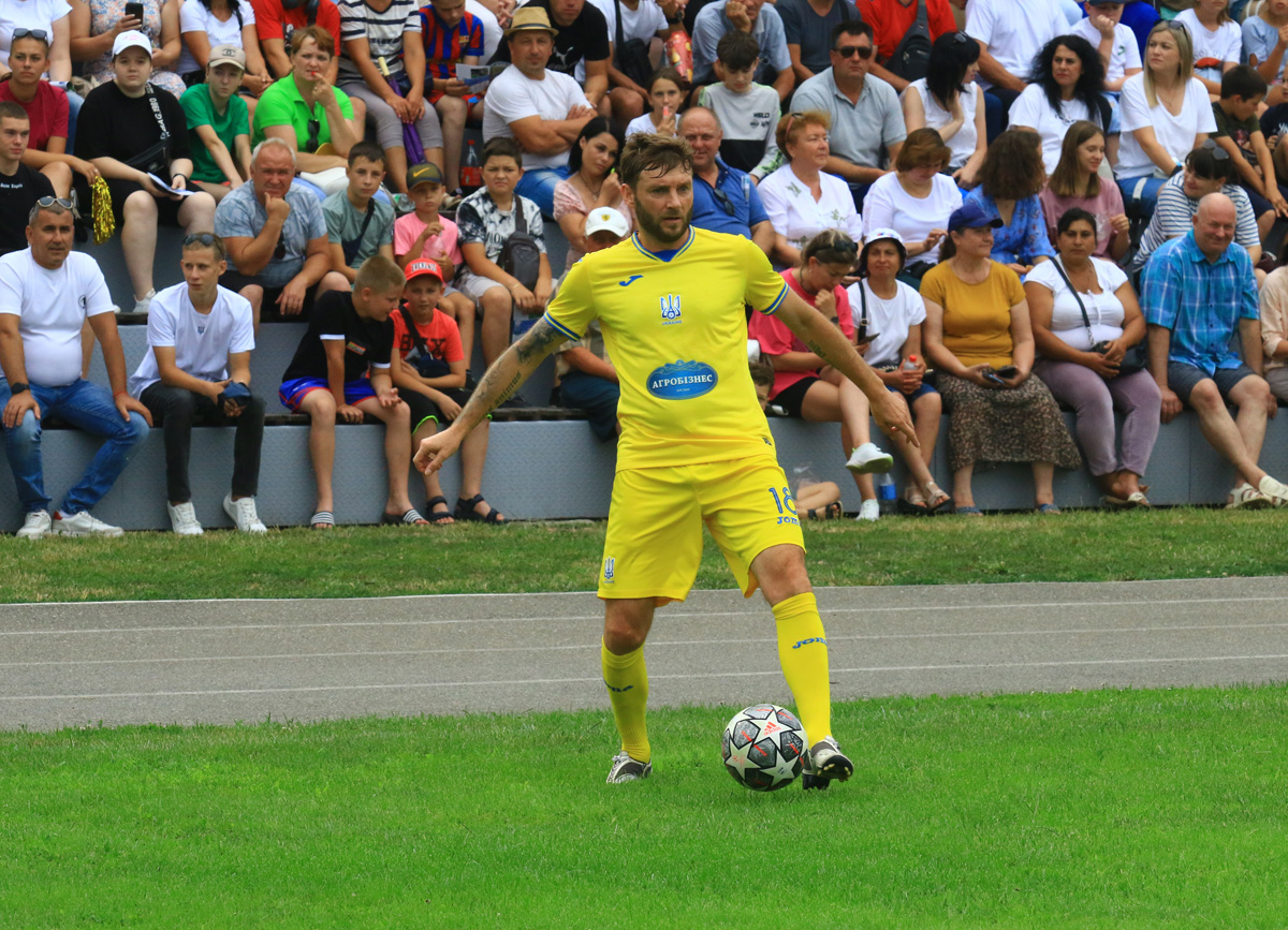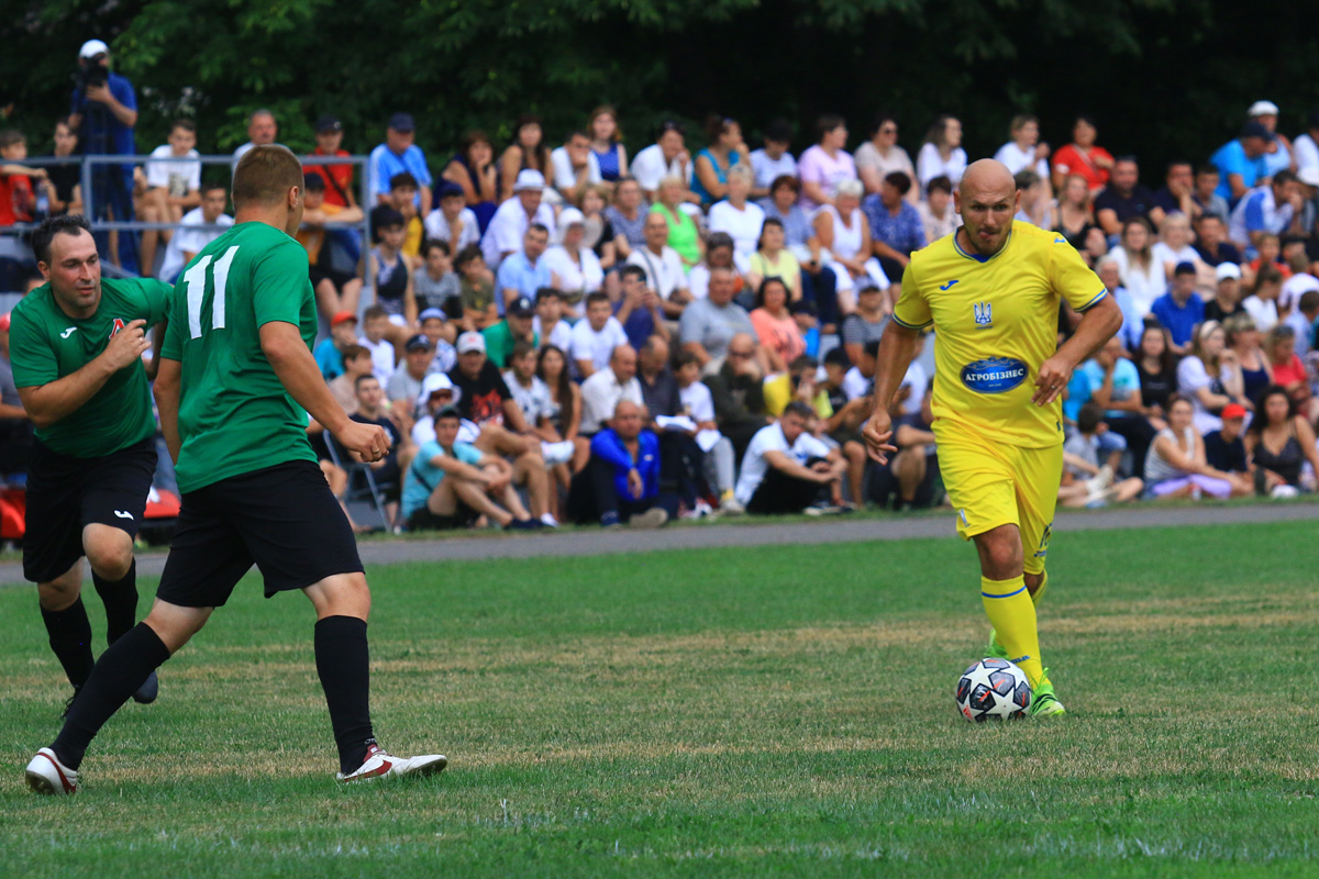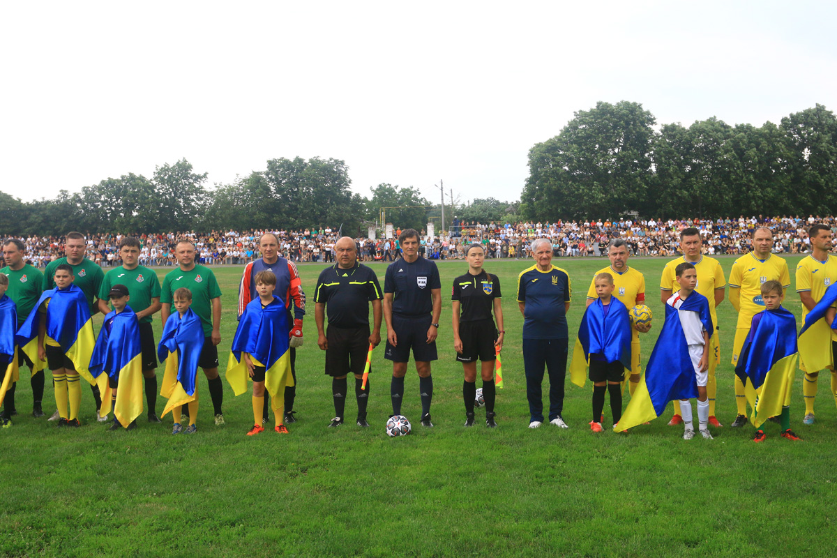 А головним цього сонячного літнього дня в Балті був футбол! Особливе захоплення глядачів викликав склад збірної ветеранів. Це ціле сузір’я яскравих виконавців різних років: Едуард Цихмейструк, Сергій Погорілий, Андрій Полунін, Олександр Косирін, Валентин Полтавець, Іван Кривошеєнко, Руслан Костишин, Артем Старгородський, Олег Шелаєв, Віталій Самойлов, В’ячеслав Свідерський, Геннадій Медведєв та Олександр Венглинський. Разом з командою були віце-президенти Асоціації ветеранів футболу України, знані футбольні фахівці Андрій Біба та Петро Чілібі. Через службу в Збройних силах України та виконання в цей час бойових завдань на сході країни був відсутній засновник збірної ветеранів, майор ЗСУ Олег Собуцький. Від нього були передані теплі слова глядачам та учасникам матчу, побажання миру та якнайшвидшого завершення війни.