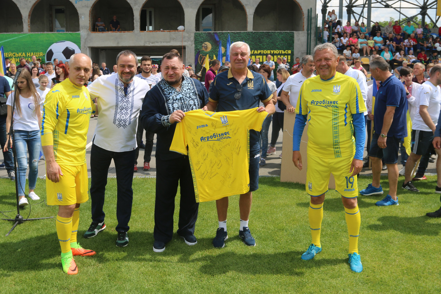 Після насиченої на теплі слова та пам’ятні подарунки урочистої частини настав час великого футболу! Тренери Анатолій Дем`яненко та Володимир Лозинський до радощів уболівальників закликали під прапори збірної ветеранів наступних виконавців: Мирон Маркевич, Сергій Нагорняк, Юрій Максимов, Олег Собуцький, Володимир Єзерський, Віталій Рева, Микола Іщенко, Андрій Хомин, Віталій Мандзюк, Богдан Шершун, Андрій Оксимець, Віталій Самойлов, В`ячеслав Свідерський, Володимир Бондаренко та Віктор Уляницький. У другому таймі на поле вийшов Тарас Герега, віце-президент ГО «Епіцентр дітям», який займається відкриттям в Україні соціально-спортивних шкіл Фонду «Реал Мадрид».