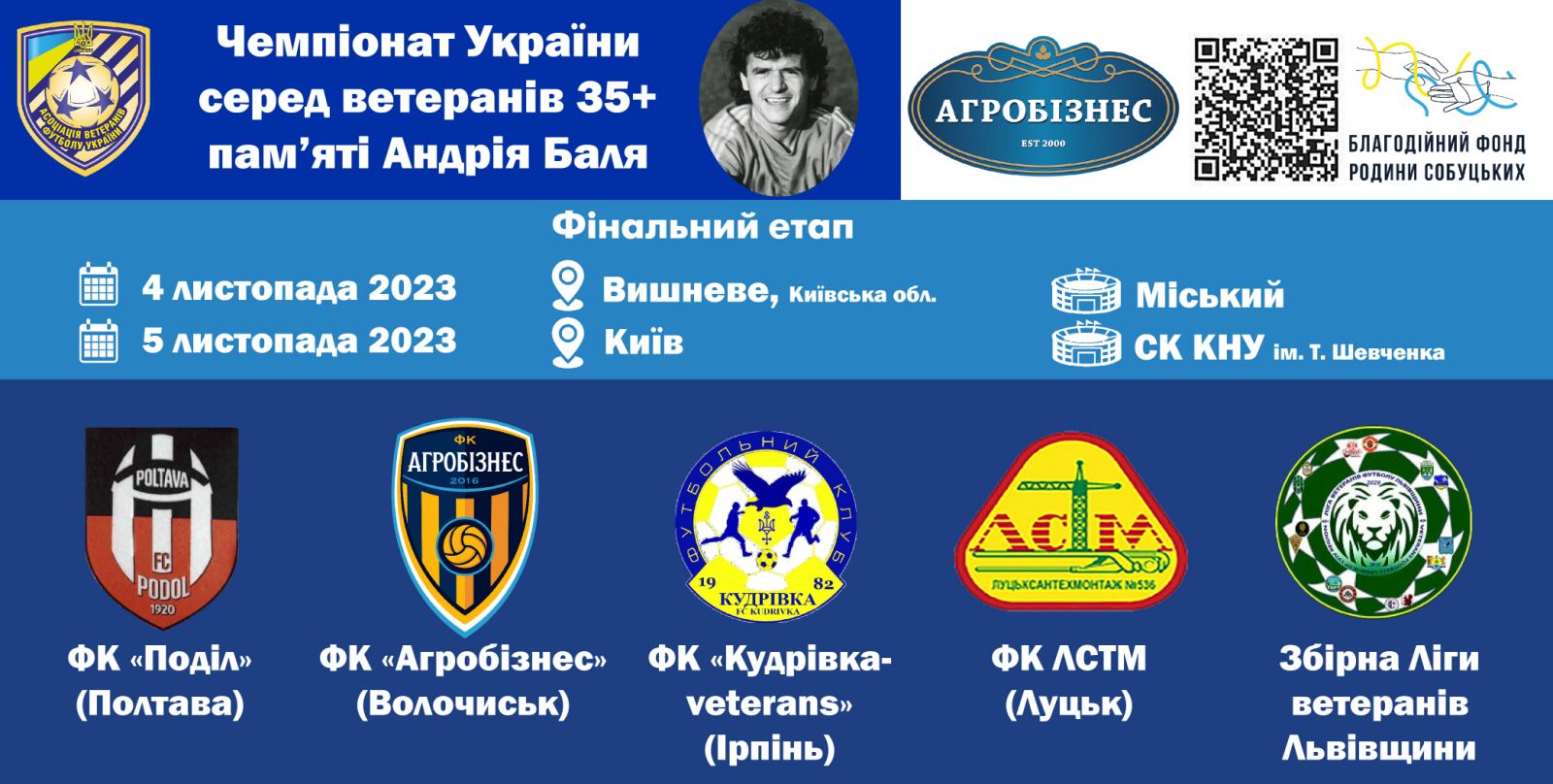 Чемпіонат України серед ветеранів 35+ років і старші цього року присвячений пам’яті видатного вітчизняного футболіста Андрія Баля. Організаторами турніру, який проводиться розпочинаючи з 1998 року, виступають Асоціація ветеранів футболу України, ТОВ «Агробізнес» та Благодійний фонд «Родини Собуцьких». Нагадаємо, згідно Регламенту змагань до заявки команди на турнір дозволяється включення гравців віком 35 років та старші (тобто 1988 р.н. та старші).