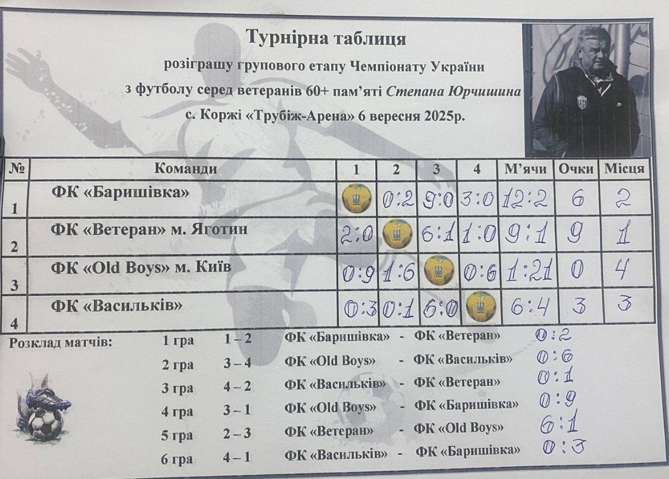 Переможцем групового етапу, вигравши три матчі з трьох, стала команда «Ветеран» з Яготина!