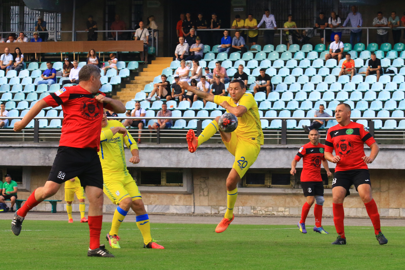 Стали учасниками чудового футбольного свята, присвяченого 30-річчю Дня Незалежності України, воїнам у зоні ООС/АТО, а також з нагоди Дня міста Коломиї. Весь матч тримали інтригу та увагу кількох тисяч глядачів, які заповнили трибуни стадіону. По черзі одна чи інша команда виходила вперед, але в підсумку збірна виявилася сильнішою! У складі команди в синій формі відзначились Андрій Хомин (двічі), Едуард Цихмейструк та Олексій Бєлік!