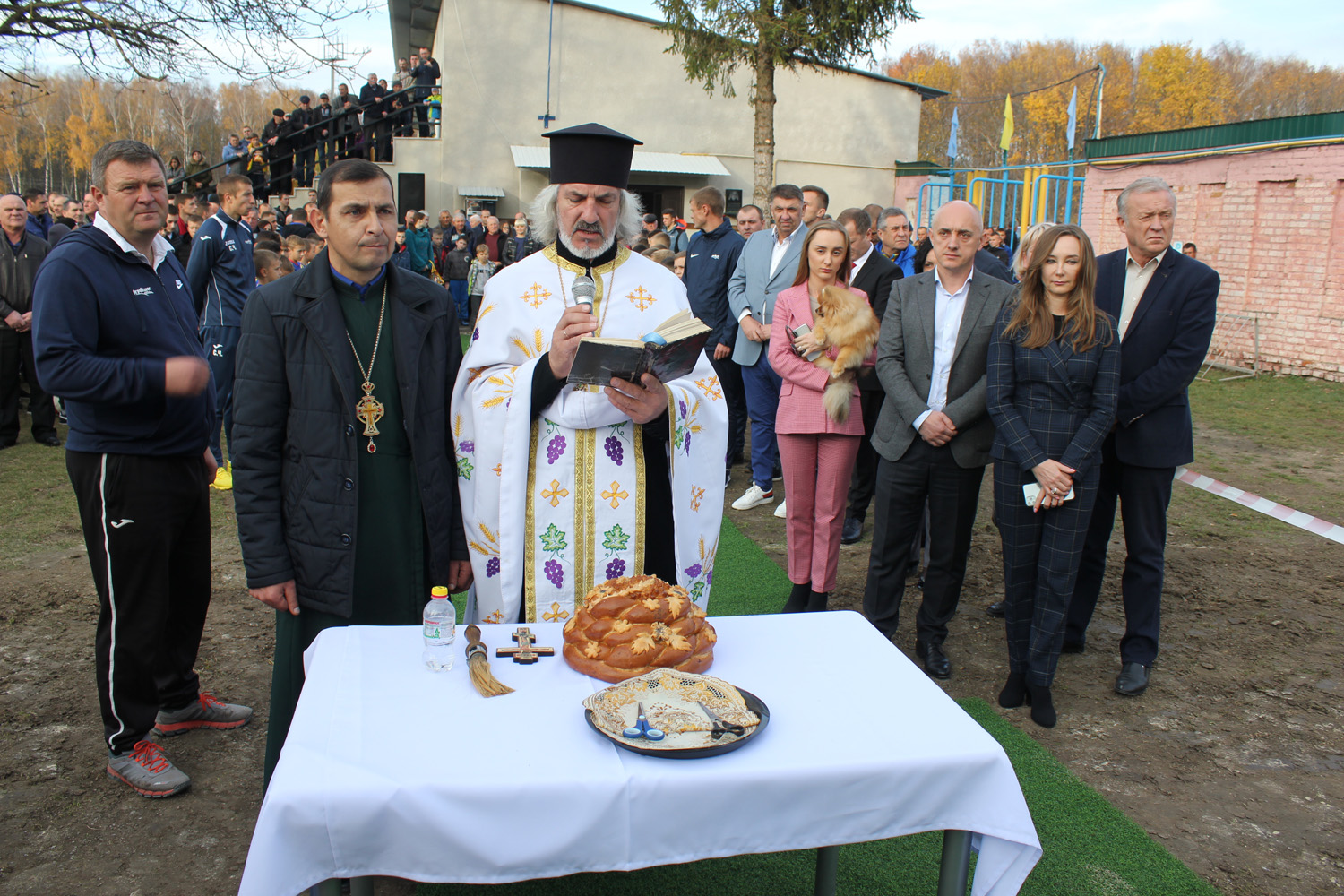 Символічну стрічку перерізали почесний президент ФК «Агробізнес» Олег Собуцький та перший заступник міського голови Волочиська Олександр Васильченко. Гостями урочистої церемонії разом із сотнями містян стали голова Тернопільської ОДА Ігор Сопель, голови Хмельницької та Чернівецької обласних федерацій футболу Ігор Хіблін та Василь Орлецький відповідно, знаменитий футболіст Сергій Нагорняк, голова Хмельницької обласної спілки ветеранів АТО Сергій Чиж та багато інших почесних людей. Передувала відкриттю молитва, зачитана отцем Миколою Фатичем.