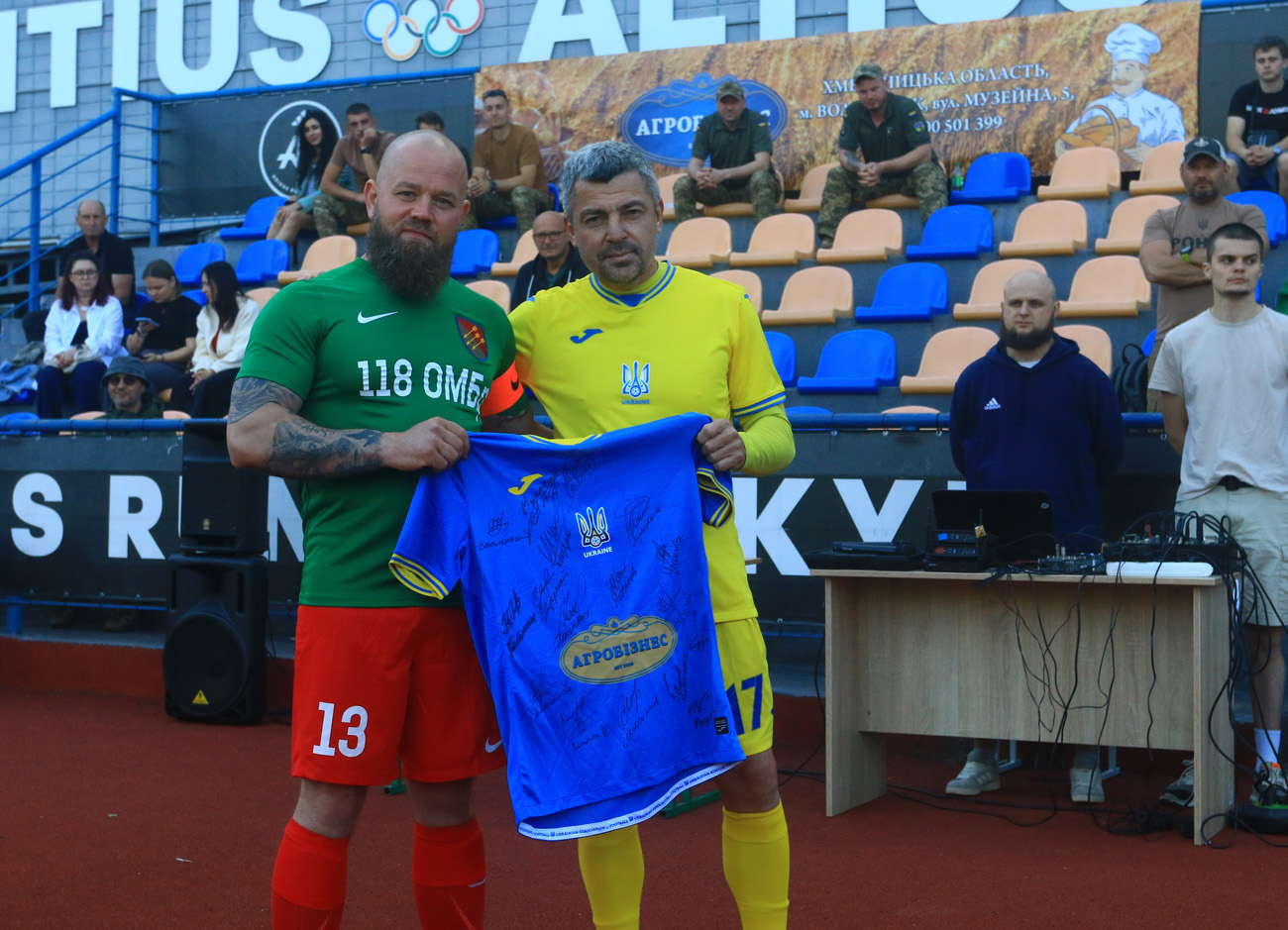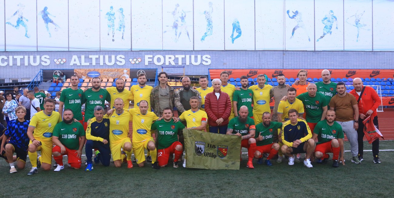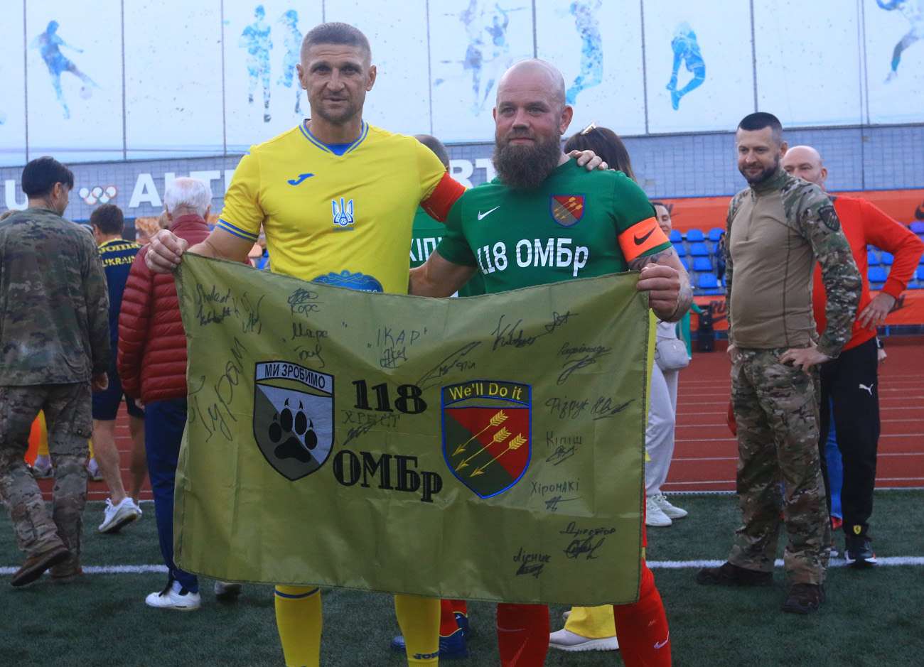 На полі «КНУБА-Арени» в Києві зустрілися ті, кого аплодували на стадіонах, і ті, перед ким ми схиляємо голови – футбольні легенди Національної збірної України серед ветеранів та воїни 118-ї окремої механізованої бригади ЗСУ.