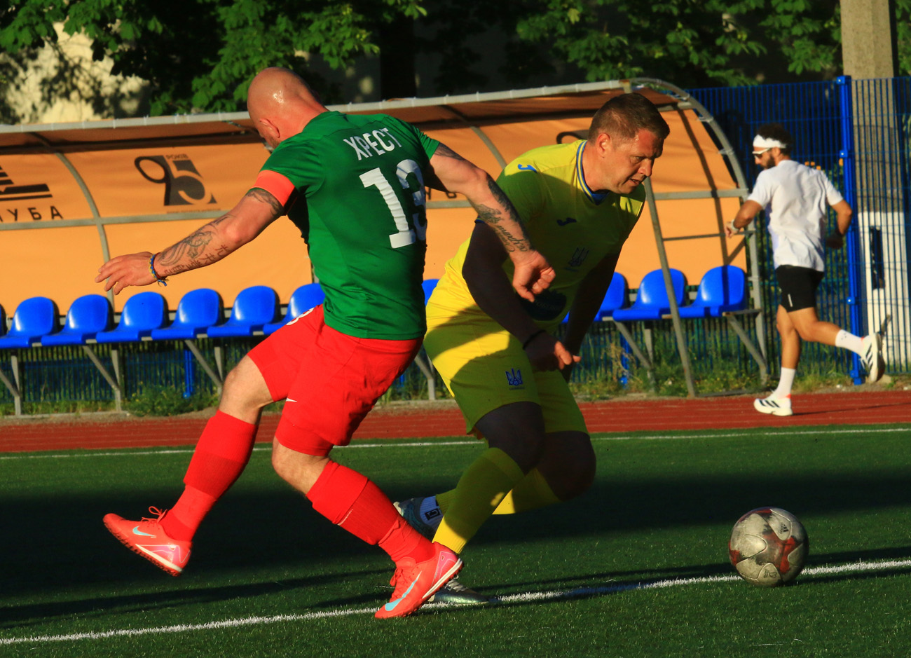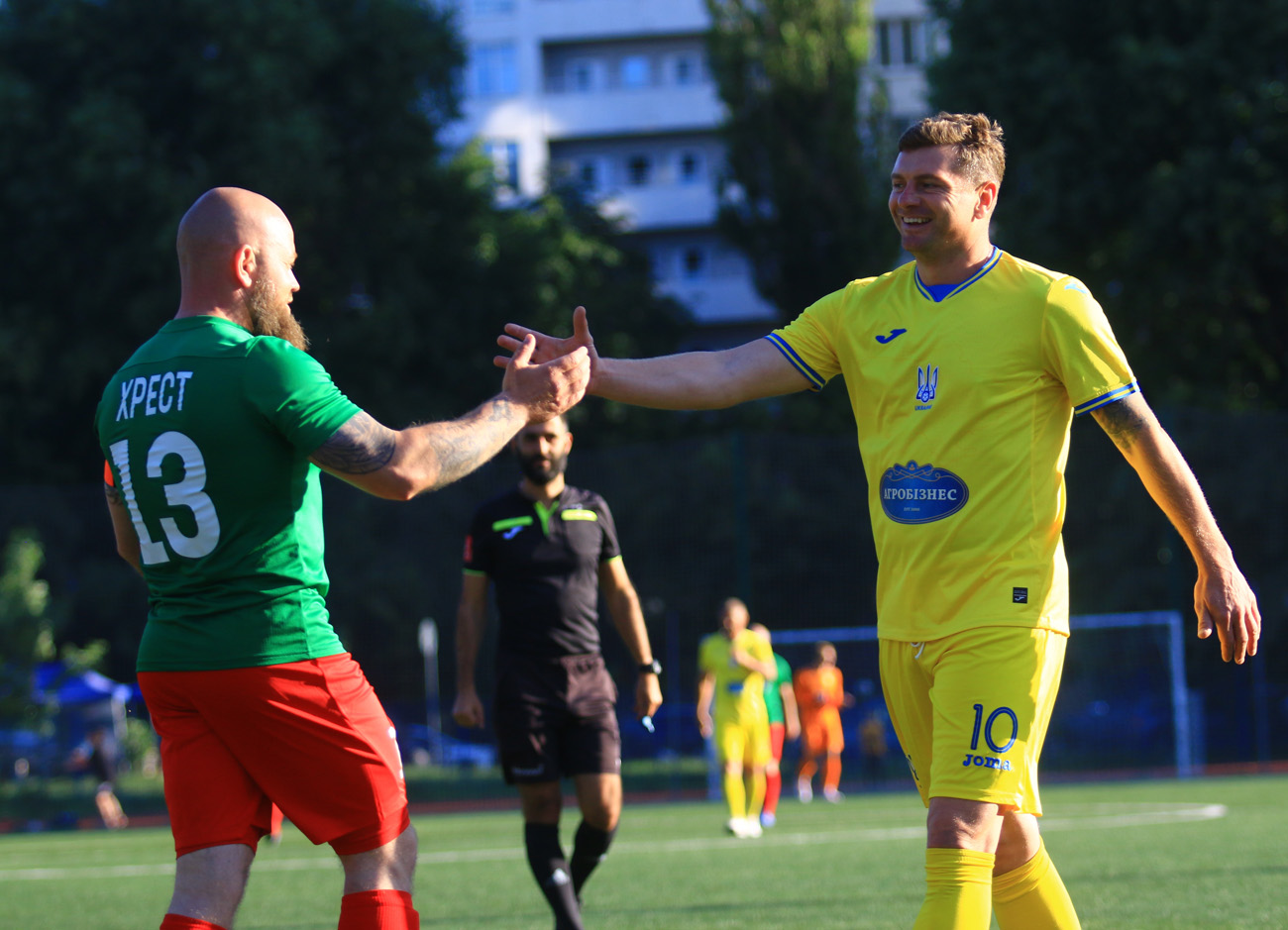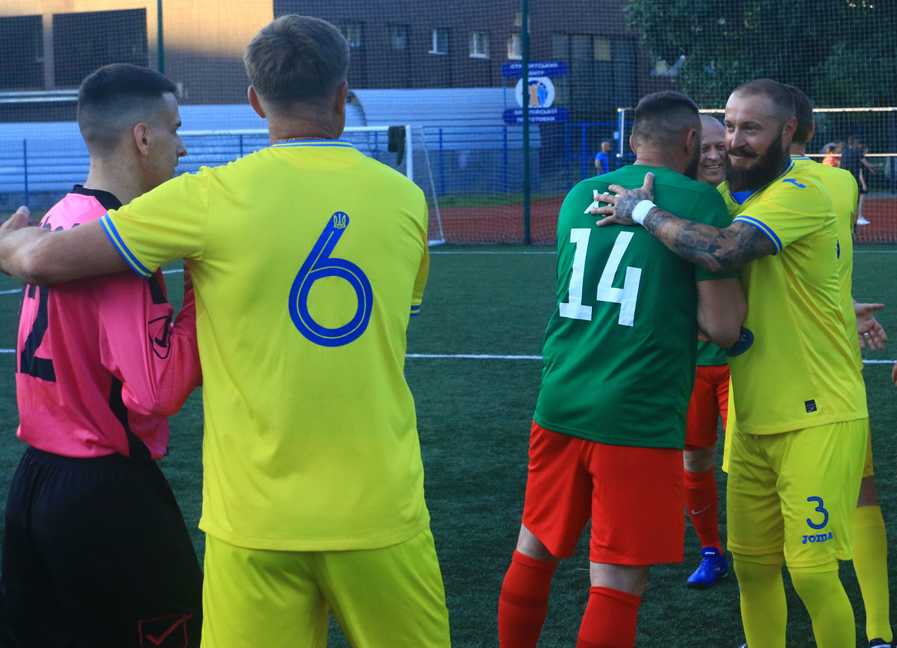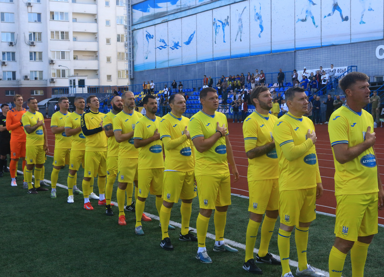 На полі «КНУБА-Арени» в Києві зустрілися ті, кого аплодували на стадіонах, і ті, перед ким ми схиляємо голови – футбольні легенди Національної збірної України серед ветеранів та воїни 118-ї окремої механізованої бригади ЗСУ.