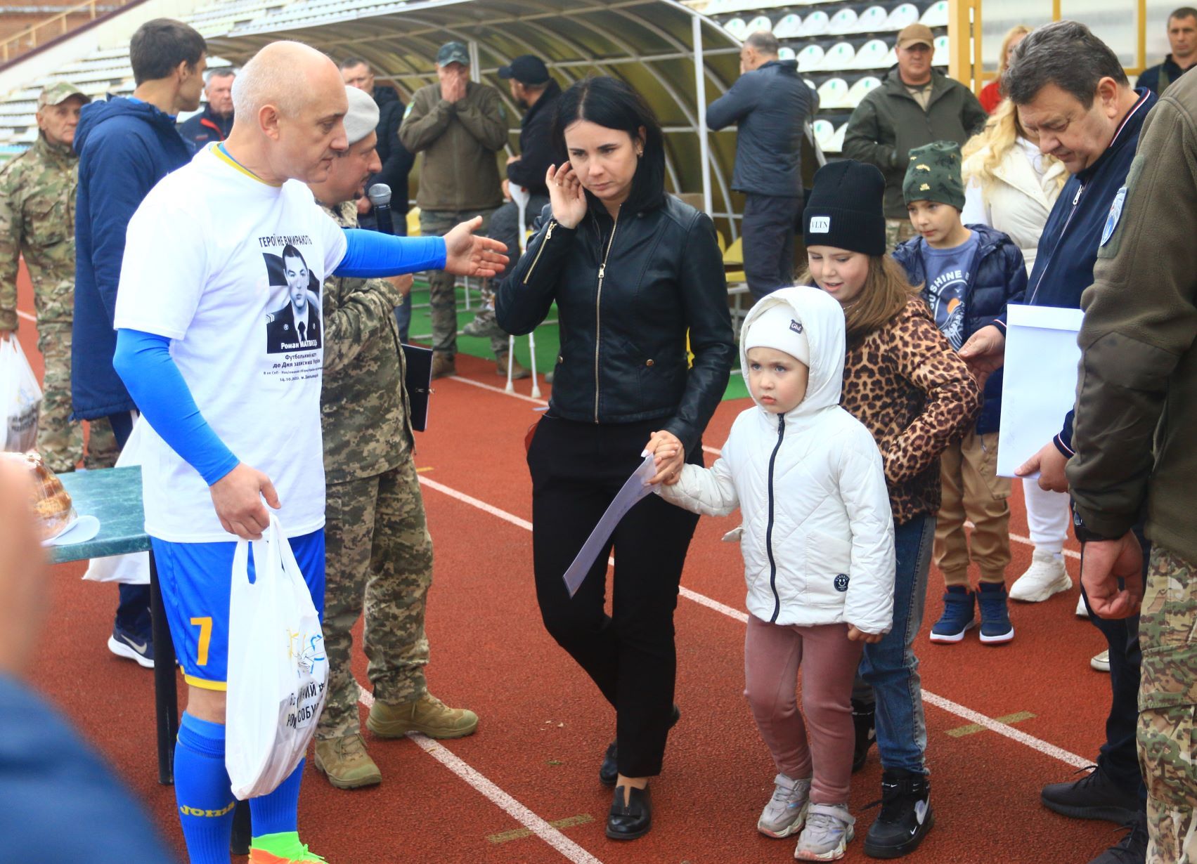 На футбольне поле гравці вийшли зодягнені в футболки з фотографіями військових 8-го полку, які загинули в період з 2014 по 2022 роки. Всього 38 Героїв, яким стоячи аплодували глядачі, родичам яких були вручені особливі подарунки і грошові сертифікати від ТОВ «Епіцентр» та Фонду родини Собуцьких, приділена така потрібна увага.