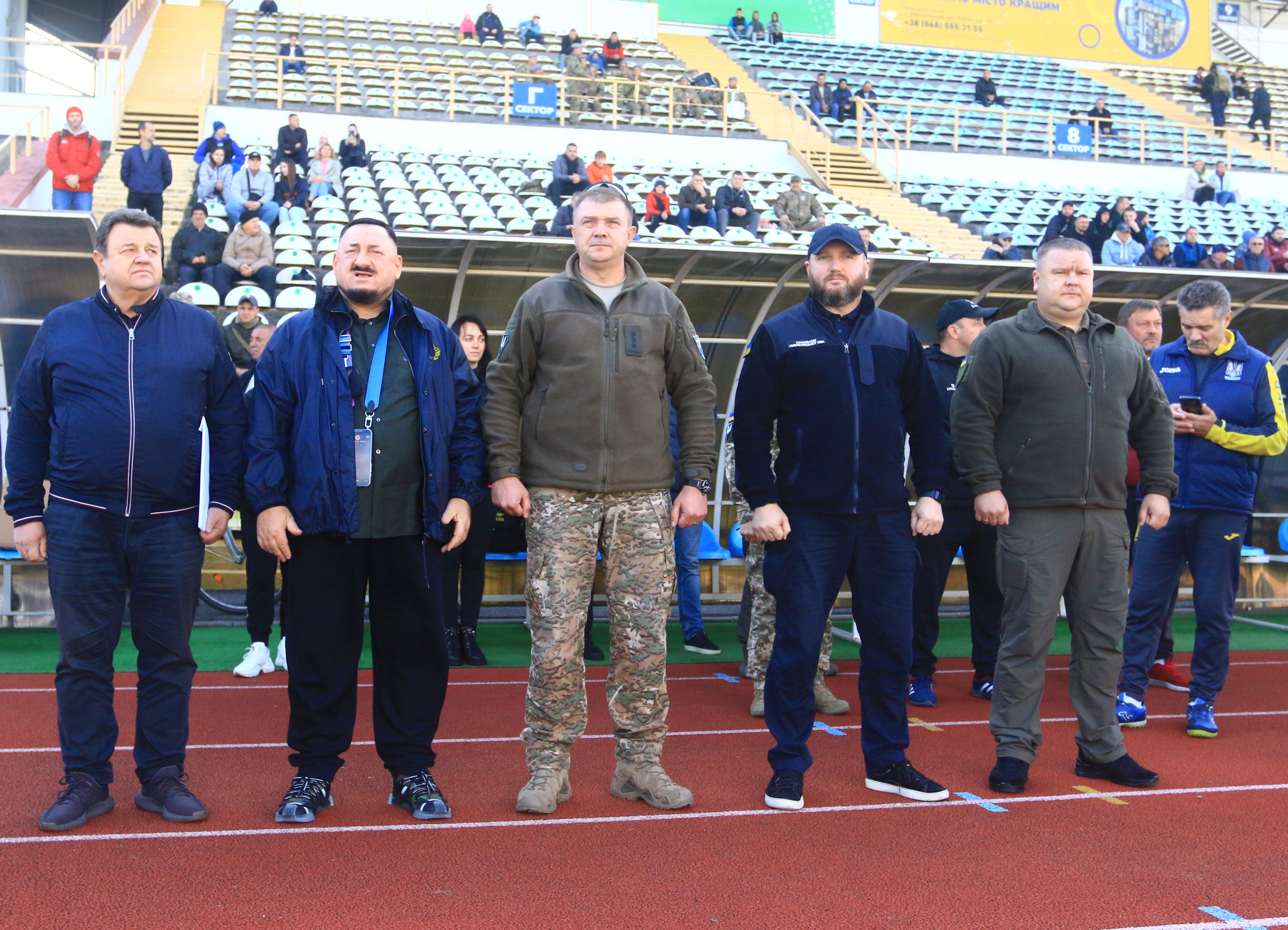 Особливе захоплення глядачів та команди 8-го полку викликав склад збірної ветеранів. Тренер Юрій Максимов зібрав ціле сузір’я виконавців різних років: Мирон Маркевич, Микола Медін, Олег Шелаєв, Сергій Нагорняк, Едуард Цихмейструк, Віталій Самойлов, Богдан Шершун, Андрій Воробей, Андрій Хомин, В’ячеслав Свідерський, Геннадій Медведєв, Олександр Романчук, Микола Іщенко та Олександр Венглинський. За команду 8-го полку виступили воротар Сергій Чиж, захисники Андрій Донець та Сергій Добропольський, відомі за виступами на високому рівні. Вони захищають Україну, тож наша футбольна спільнота має в ЗСУ потужне представництво! Разом із засновником збірної ветеранів Олегом Собуцьким, який нині майор у ССО ЗСУ.
