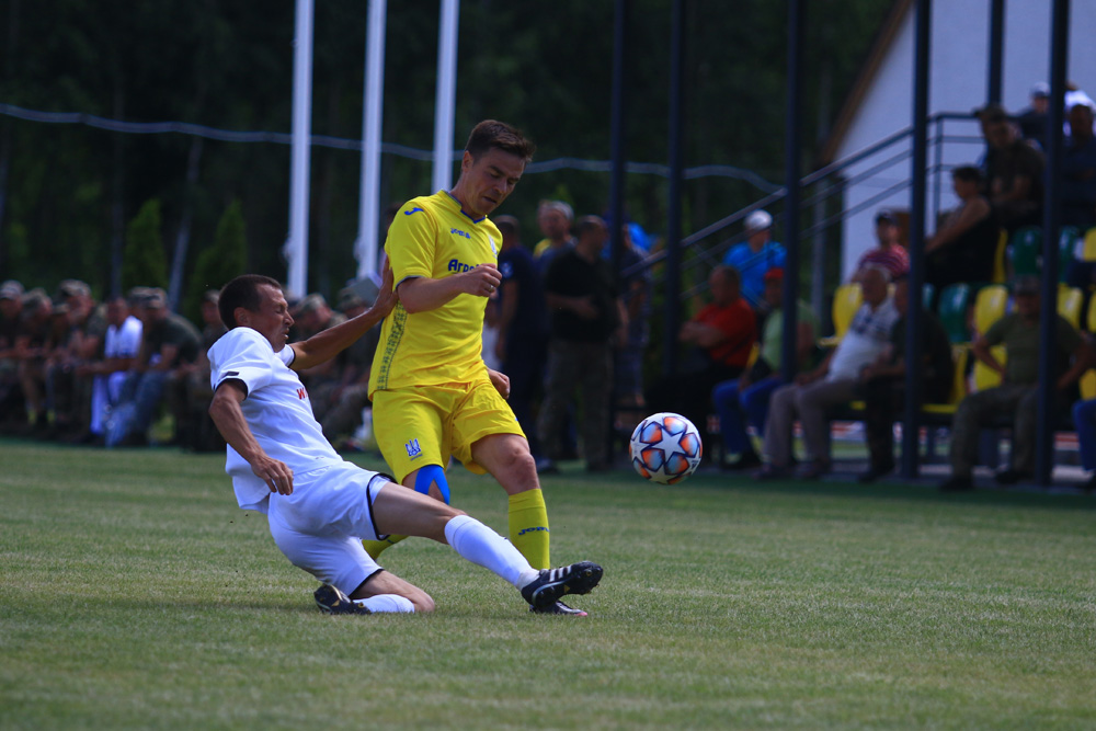 Серед глядачів на трибунах були присутні близько сотні військових. Кільком із них, із прикордонного загону, в другому таймі дали нагоду вийти в нашому складі, і виглядали хлопці більш ніж пристойно. В підсумку зіграли 1:1, гол у складі збірної на рахунку Олексія Бєліка.