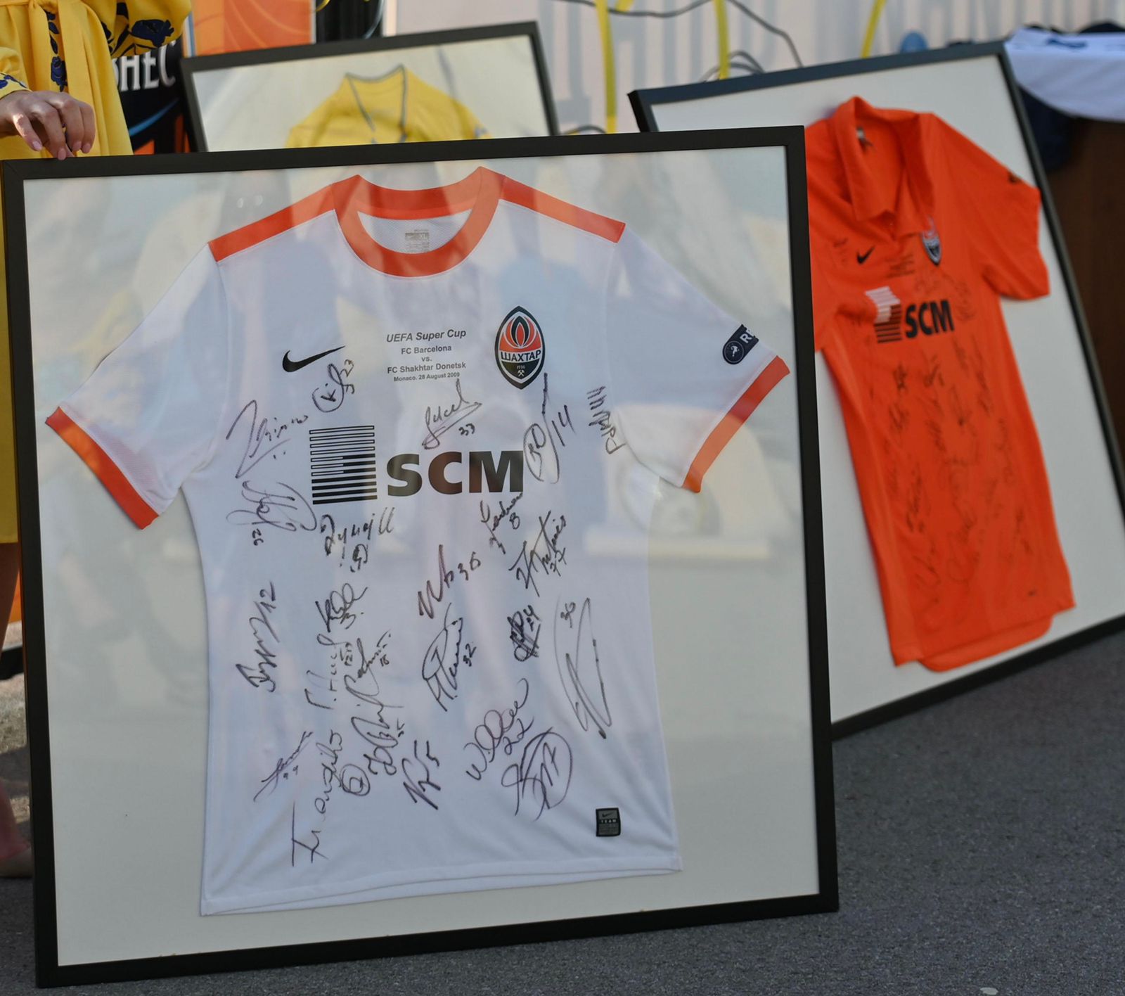 110000грн. – футболка Володимира Єзерського з фіналу Кубка УЄФА «Шахтар» – «Вердер»(2009р.) з автографами гравців