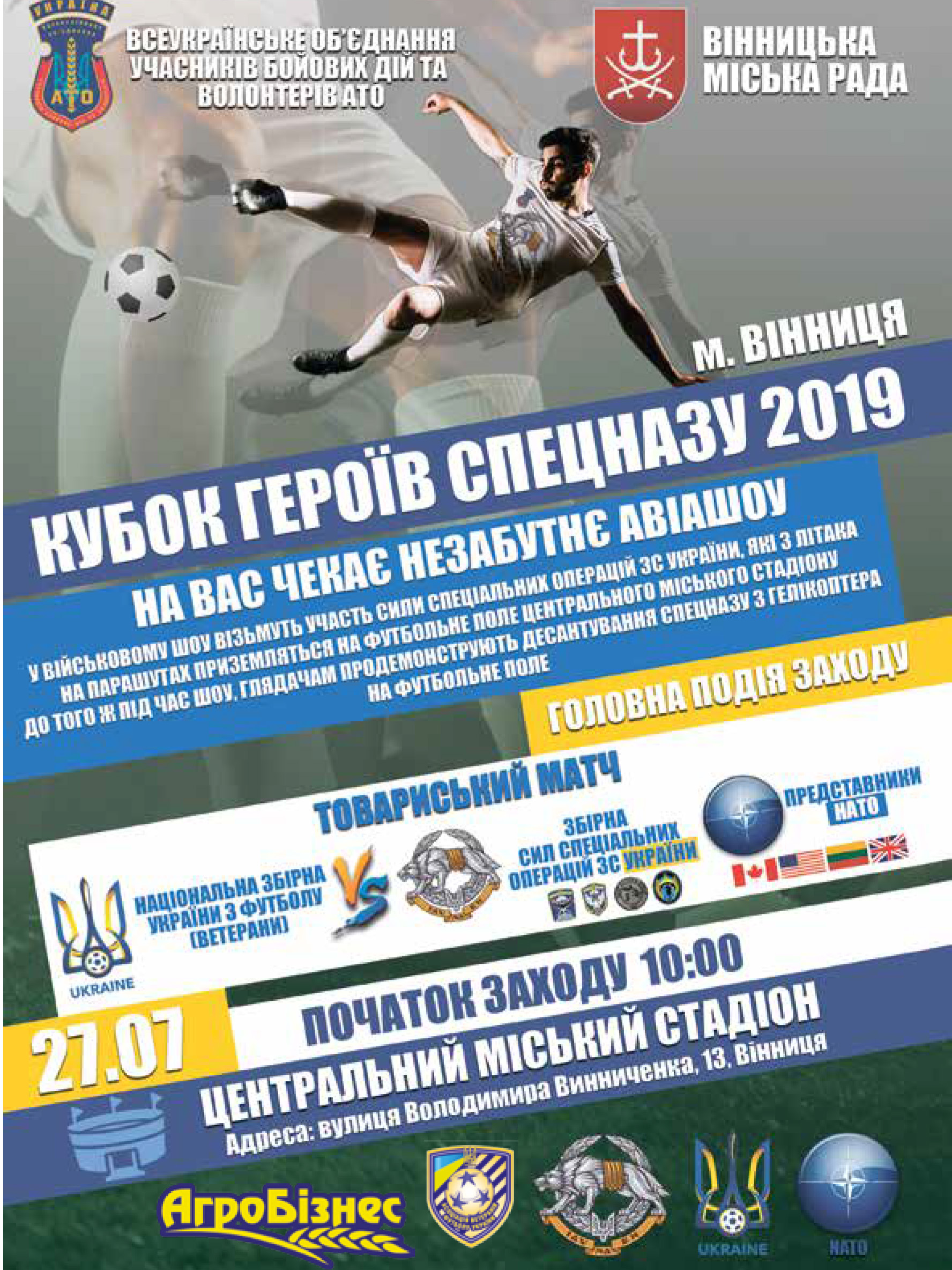 — Нам дуже приємно у завжди гостинній Вінниці спостерігати за запеклими футбольними баталіями та взяти участь в урочистій церемонії нагородження турніру серед команд ССО ЗСУ, а також стати свідками цікавого матчу між найкращими футболістами-спецназівцями та видатними українськими гравцями минулих років. Приємно відзначити, що цього року не лише гостями, а й учасниками змагання стануть військові з країн-членів НАТО. Організатором турніру виступає наш добрий друг, справжній патріот України та справжній спецназівець Анатолій Слівінський, за що йому особлива подяка! Ми бачимо, якою повагою він користується серед військових, як його поважають. Такі змагання – найкраща фізична та психологічна реабілітація для військових, нагода знову побачити друзів, згадати приємні моменти та вшанувати тих, хто не повернувся з війни. Збірна ветеранів усі свої матчі проводить під гаслом підтримки військових на сході. В суботу ми зіграємо у мирній Вінниці, через тиждень у Житомирі нас чекають десантники. А День Незалежності відзначатимемо на сході України, де нас радо чекають військові та місцеві мешканці».