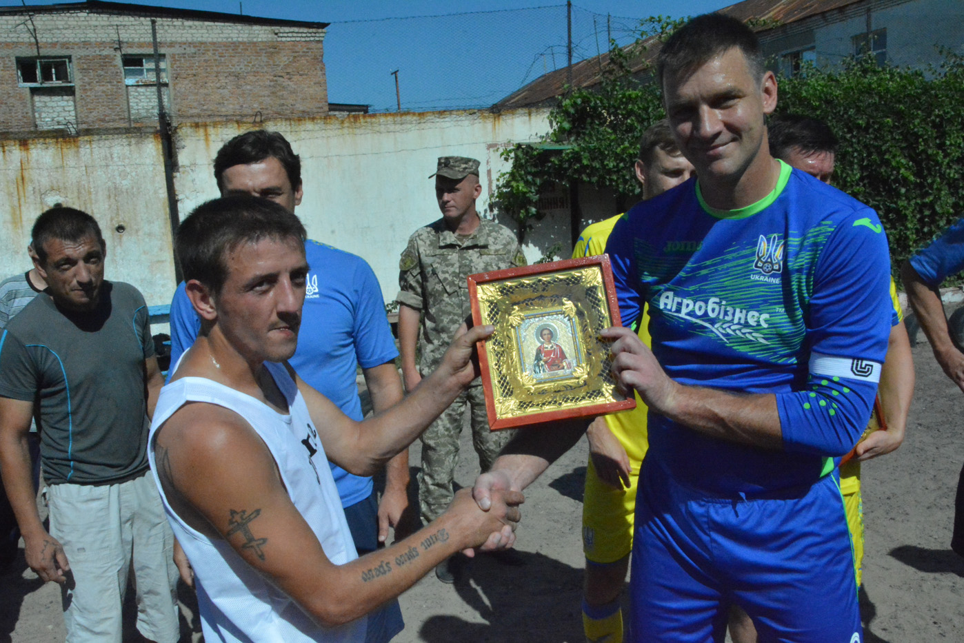 Від імені збірної та всієї футбольної спільноти України Анатолій Дем’яненко вручив керівництву колонії футбольний м’яч із автографами гравців, отримавши у відповідь щиру подяку за візит дружби.