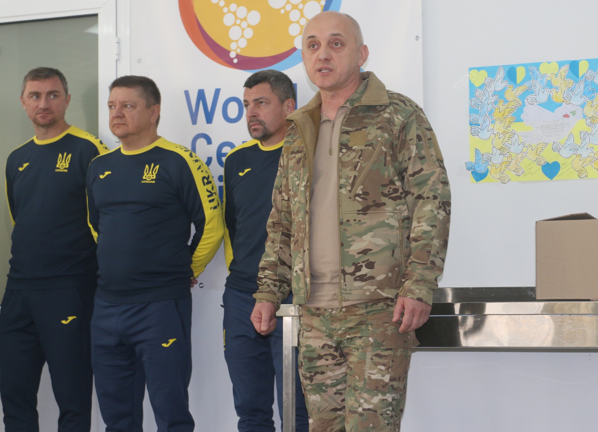 Майор ЗСУ, засновник Національної збірної ветеранів Олег Собуцький подякував військовим за захист України, медперсоналу закладу за щоденну кропітку роботу, презентував Григорію Дунасу футболку з автографами та запросив всіх присутніх на дружній матч за участю Національної збірної ветеранів, який відбудеться у Великому Любені.