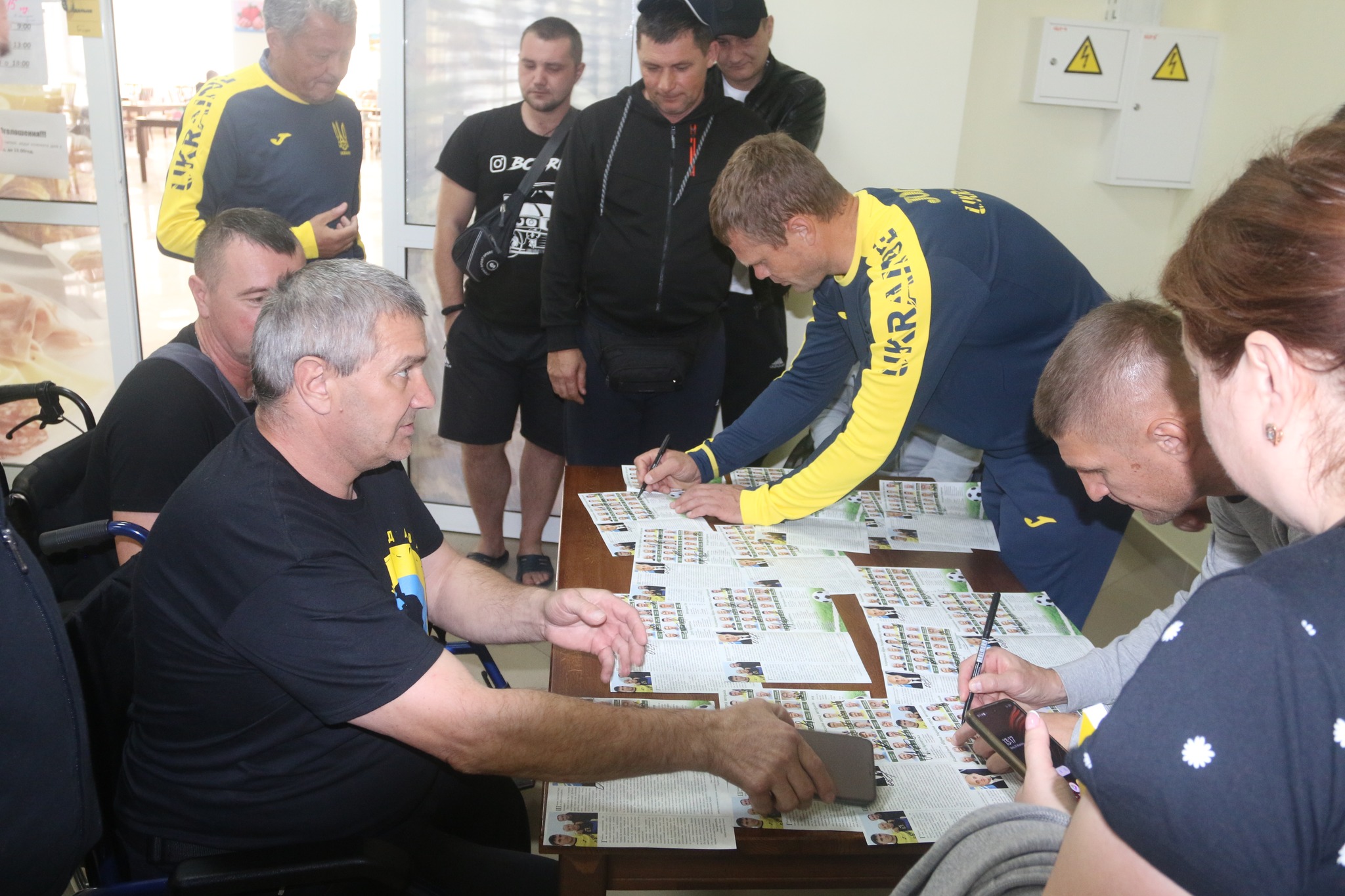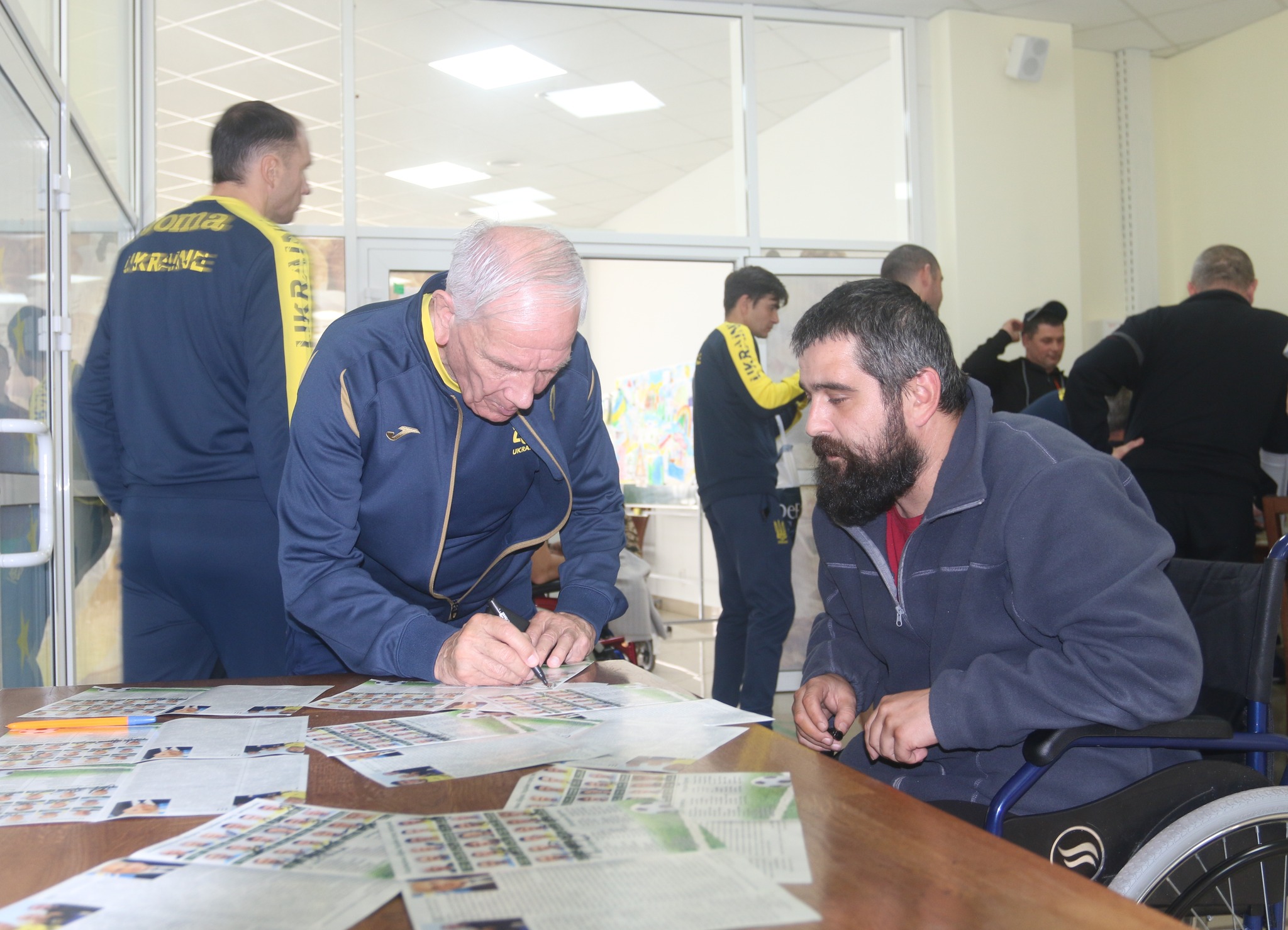 Наразі на реабілітації в Галичині понад 150 чоловік та жінок, у кожного з яких своя доля та життєвий шлях. Більше години тривала тепла зустріч ветеранів футболу, невимушене спілкування про сьогодення та майбутнє України, не обійшлося і без футбольних запитань.