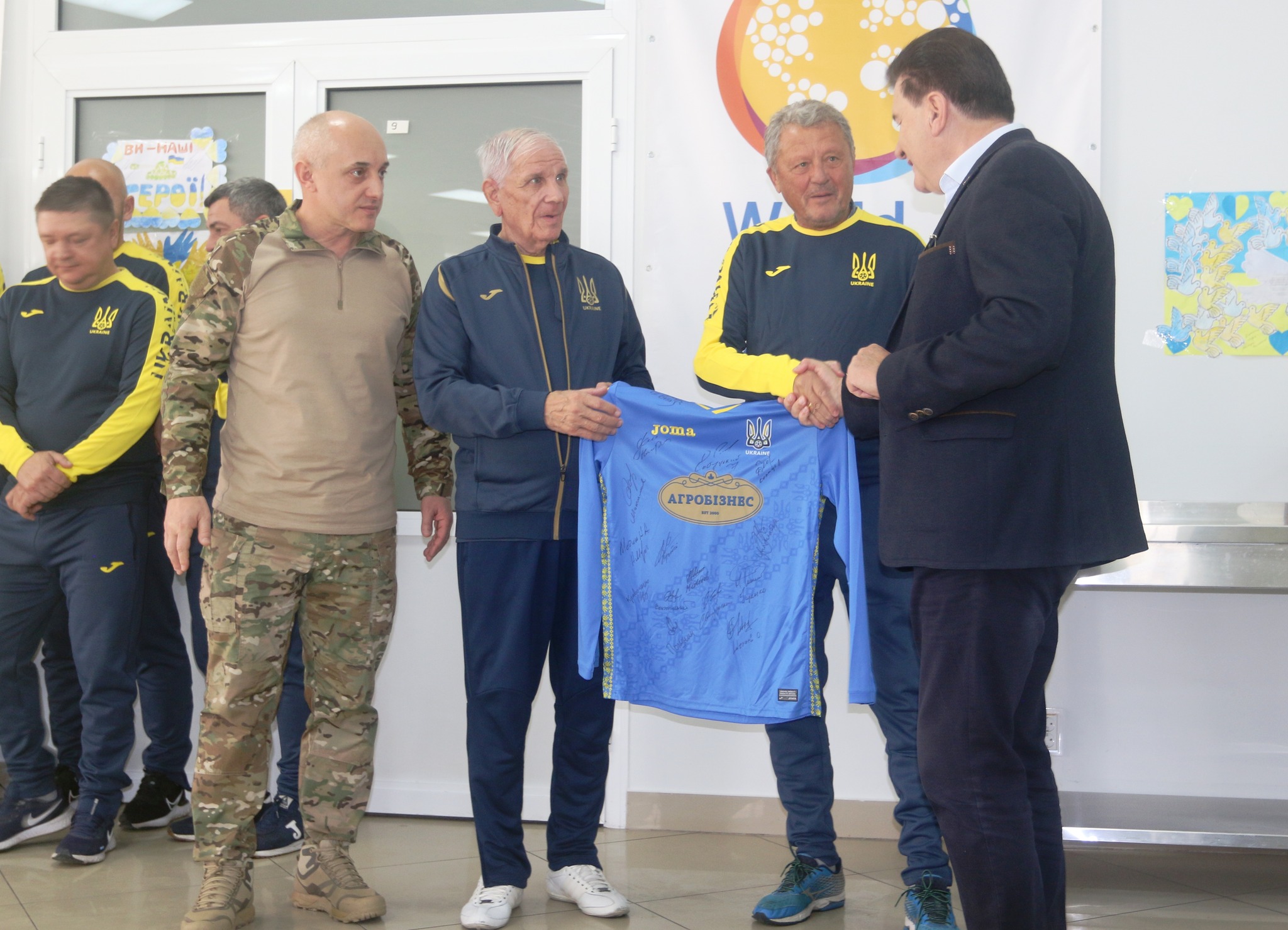 Майор ЗСУ, засновник Національної збірної ветеранів Олег Собуцький подякував військовим за захист України, медперсоналу закладу за щоденну кропітку роботу, презентував Григорію Дунасу футболку з автографами та запросив всіх присутніх на дружній матч за участю Національної збірної ветеранів, який відбудеться у Великому Любені.