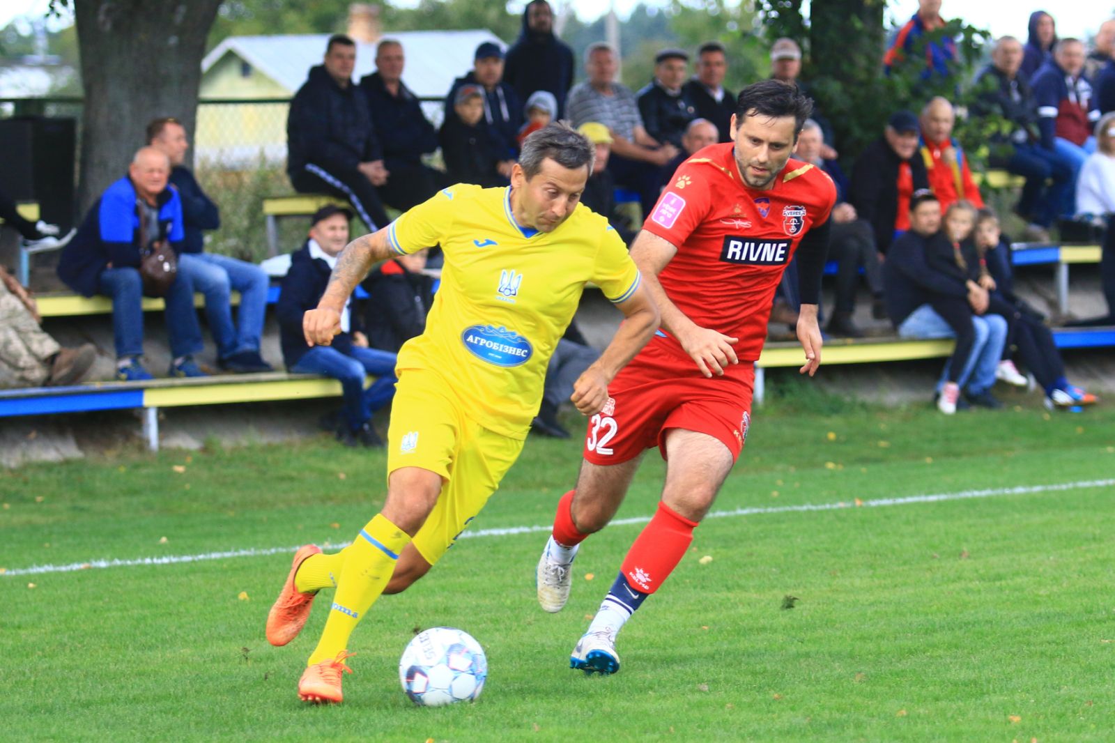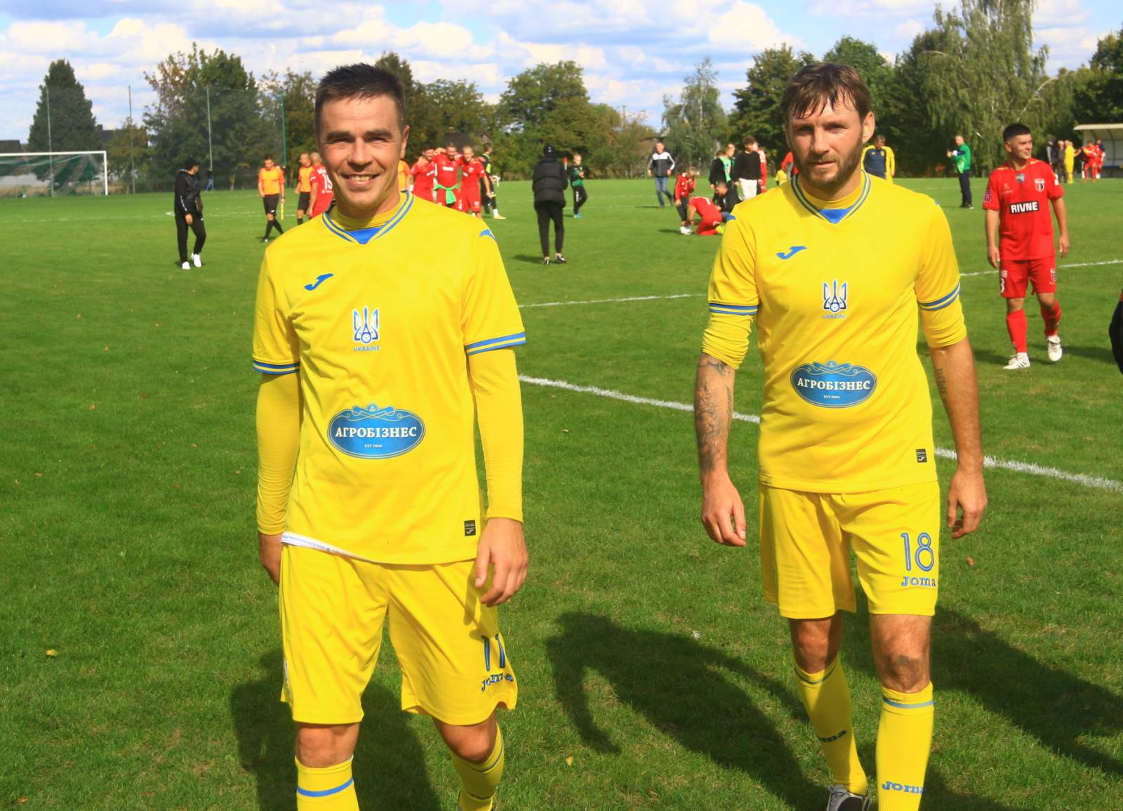 На початку гри кумедний м’яч у власні ворота провів воротар рівнян. Згодом перевагу збірної збільшили Сергій Нагорняк та Олег Собуцький. Врешті, наприкінці гри господарі показали характер і зусиллями Чикалюка та Тулігловича скоротили відставання до мінімуму – 2:3.